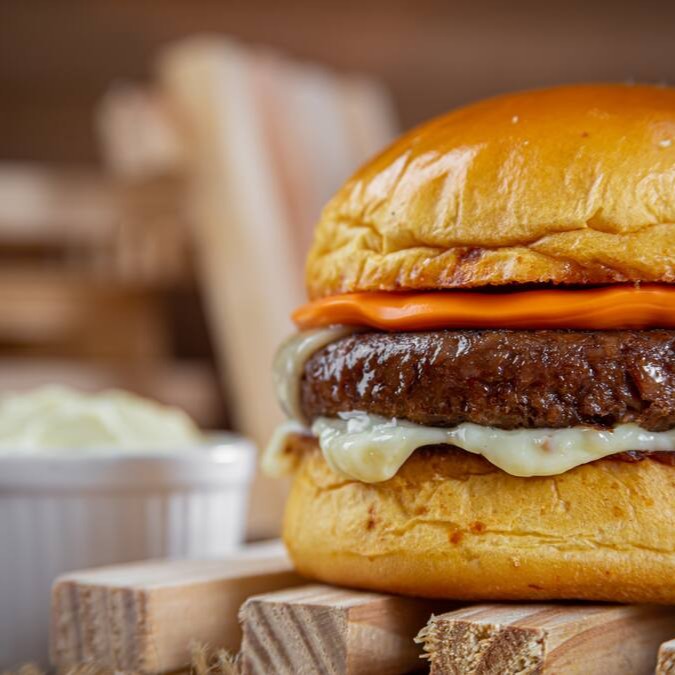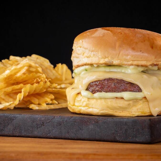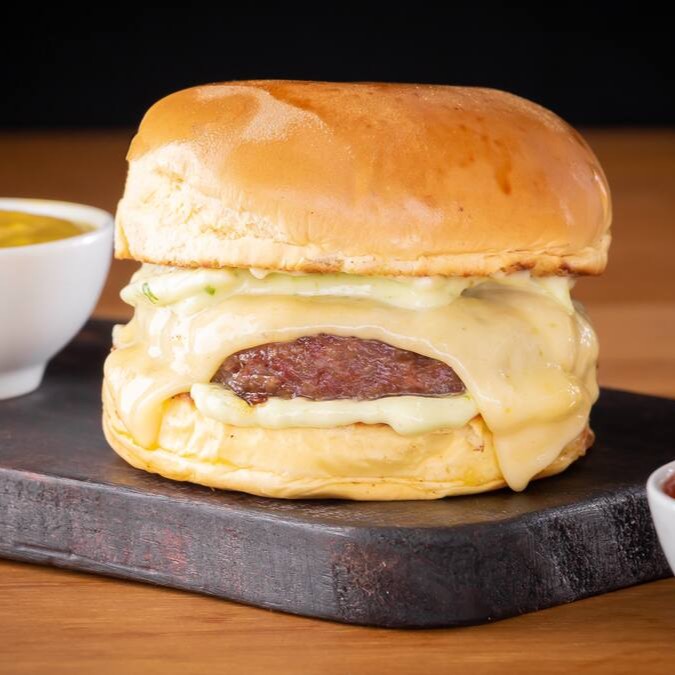 Pão de brioche, hamburguer vegetal, cheddar puro e molho especial Ibaiti.