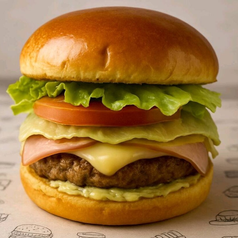 Pão De Brioche, Queijo Fatiado, Tomate, Presunto, Alface Americana, Hamburguer De 150 Gramas E Uma Especial Maionese Verde.