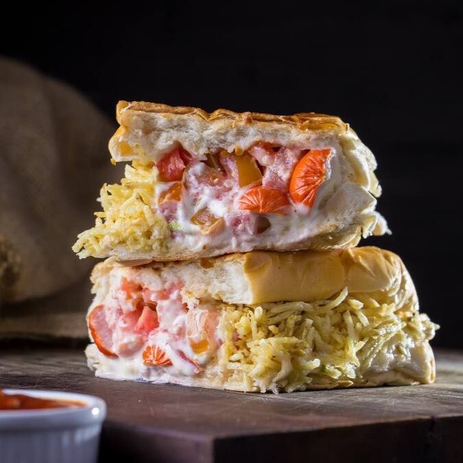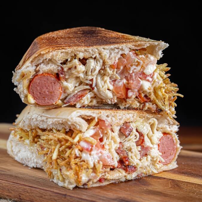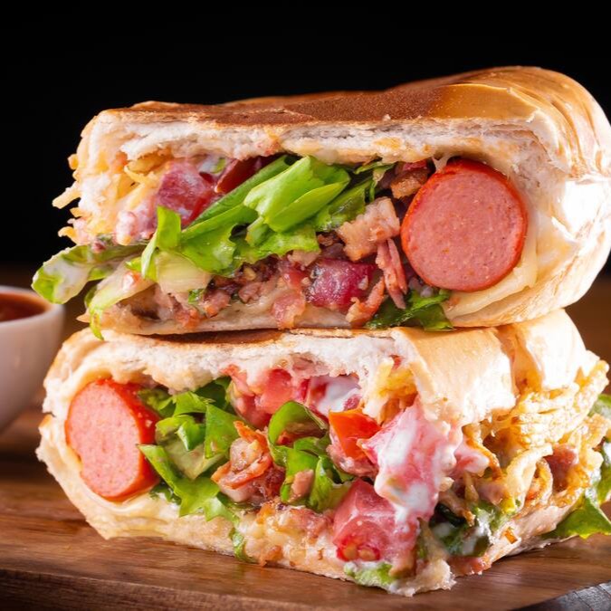 Pão de 15 cm tostadinho, recheado com salsicha Perdigão, frango, calabresa e bacon picadinhos e dourados na chapa, tomate e batata palha, finalizados com uma deliciosa maionese artesanal que dá o sabor especial ao lanche.