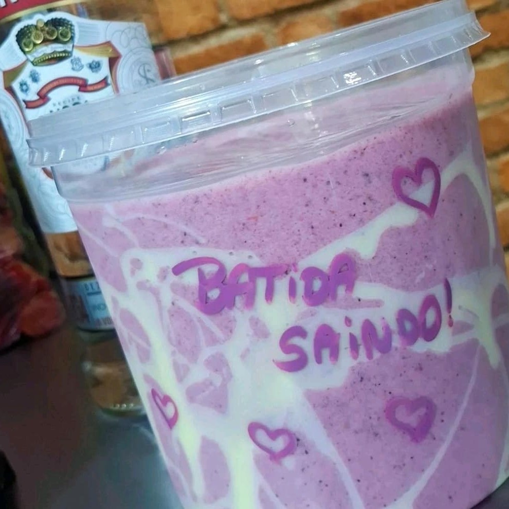 Batida preparada com mix de frutas, morango, amora, framboesa e mirtillo importado, leite condensado, gelo potável e doses de vodka Smirnoff..