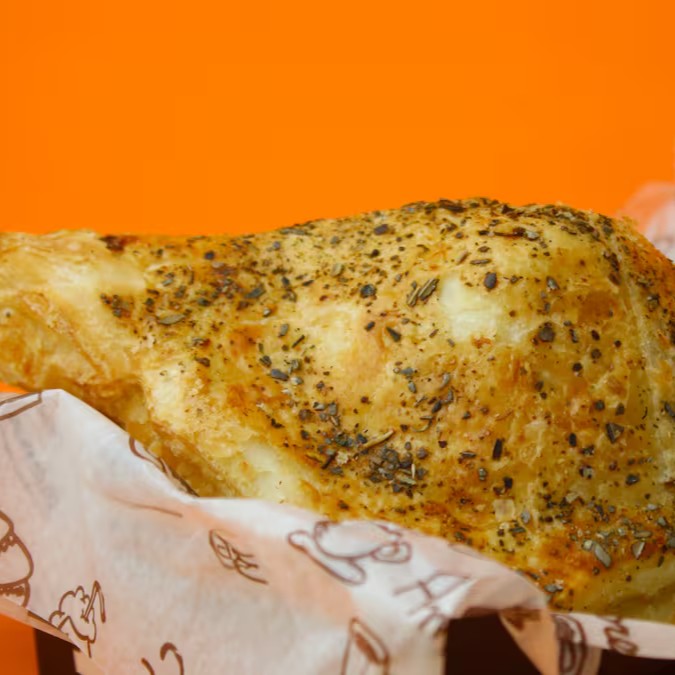 Sanduíche assado com frango e cheddar.