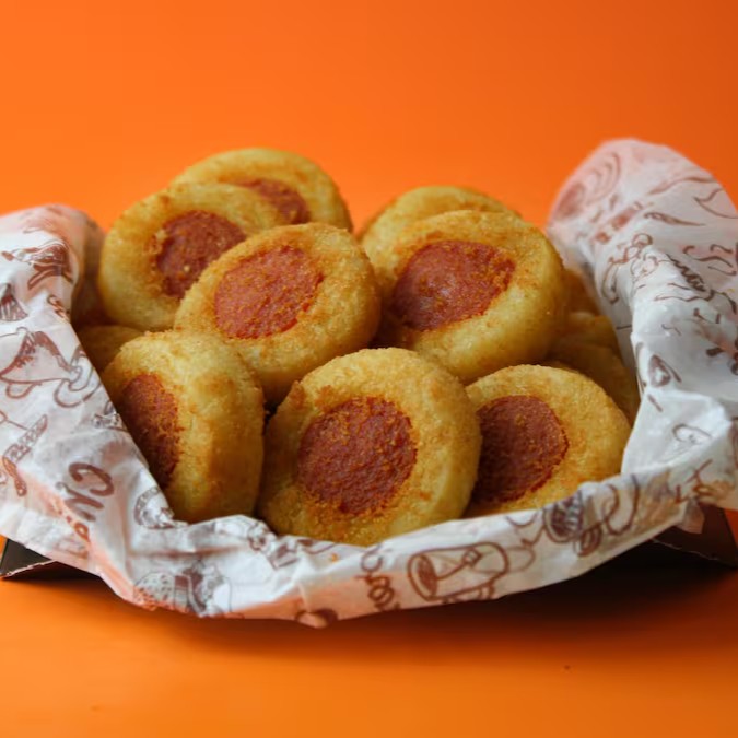 50 Risoles De Calabresa E Queijo + Fanta Laranja 350 Ml