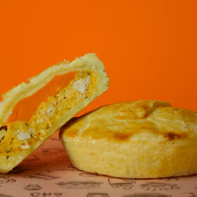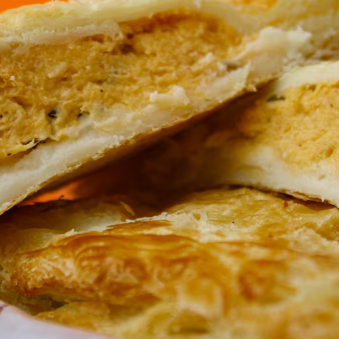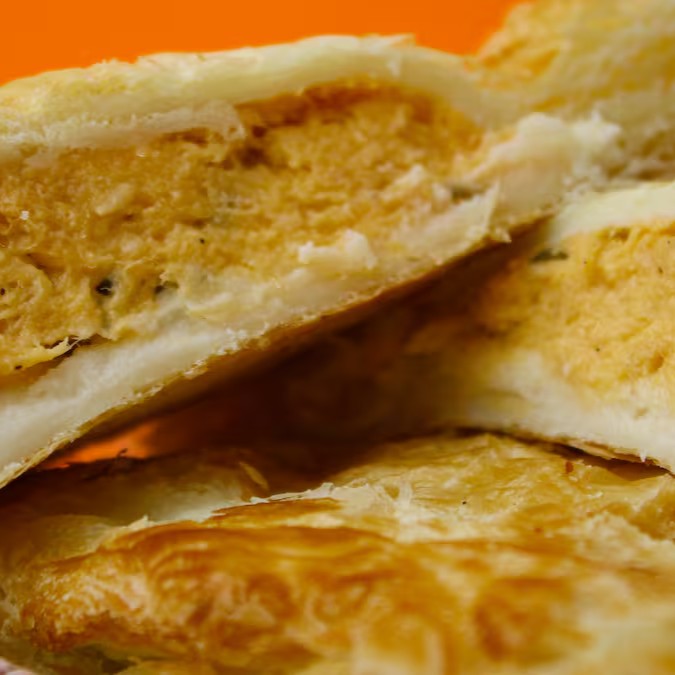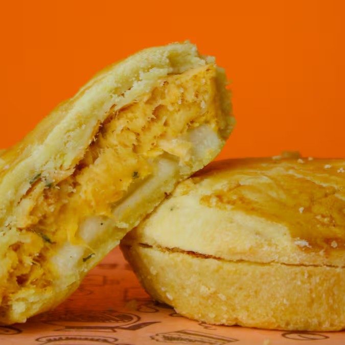 Empada de frango com recheio de cheddar.