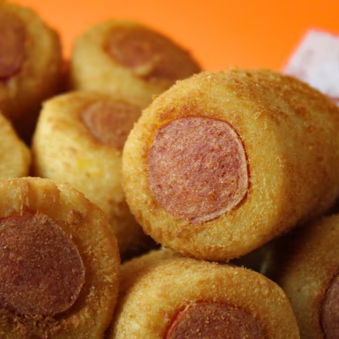 Salgado enrolado recheado com salsicha