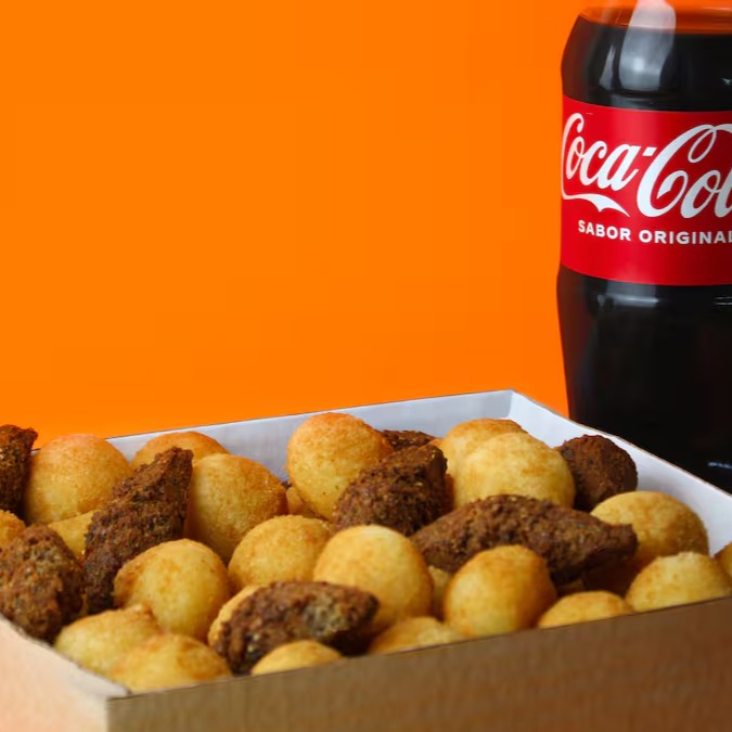 50 salgados de festa 20g + 1 Coca ou Guaraná 600ml