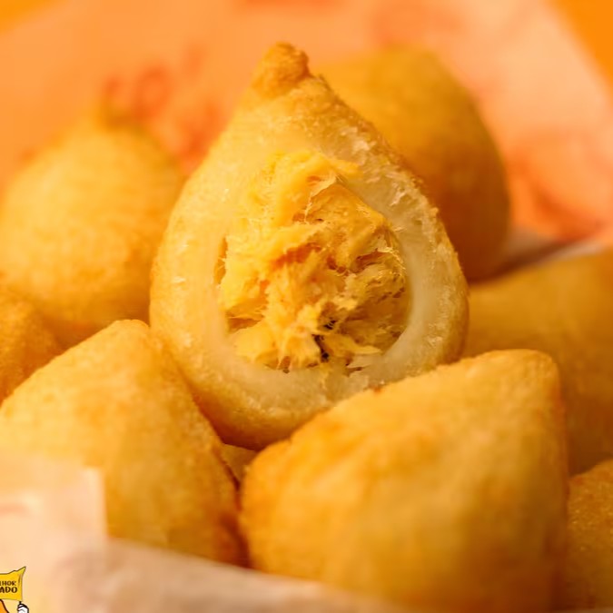 Coxinha de frango, com cheddar e Doritos