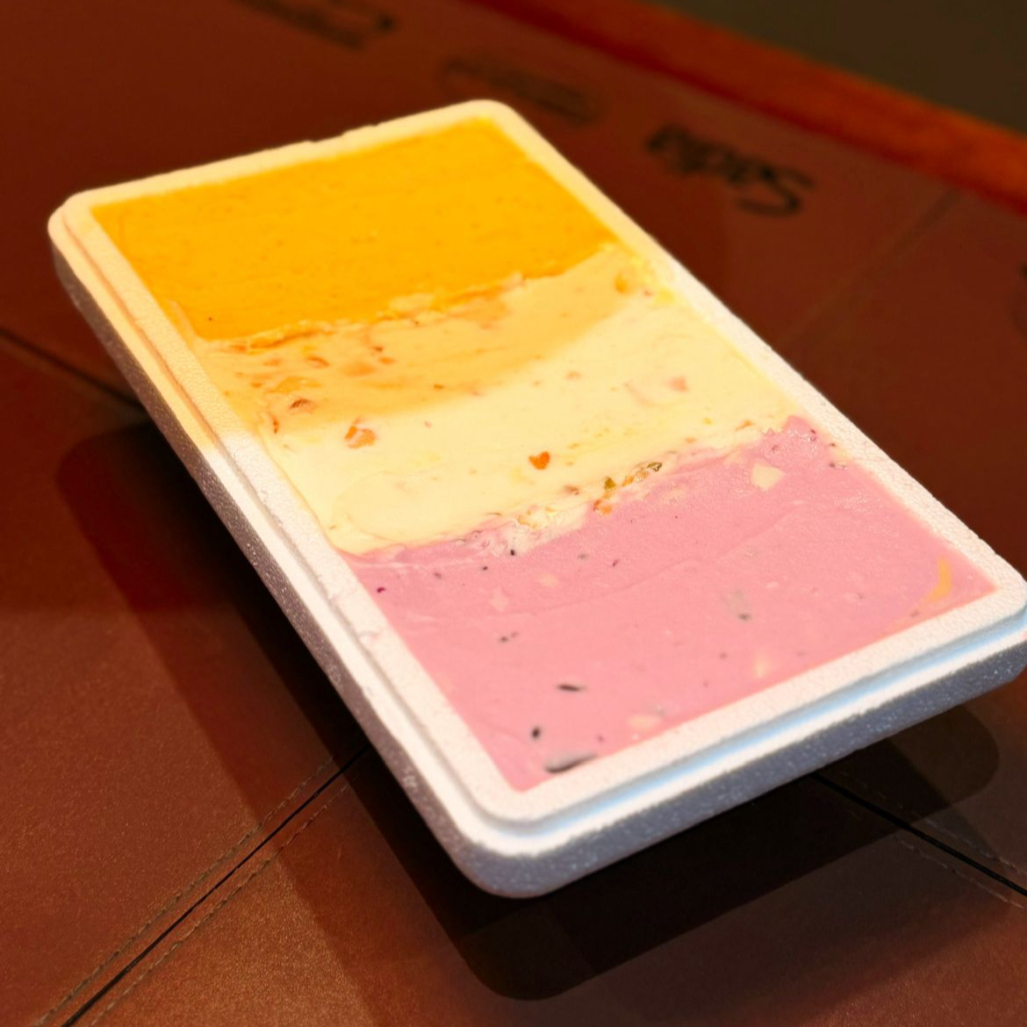Gelato cremoso de mousse de maracujá, flocado com delicado chocolate meio amargo. Doçura elegante e sabor marcante, sem acidez e sem textura aerada — apenas pura cremosidade.
