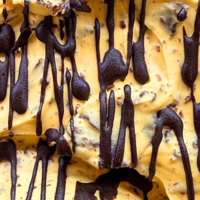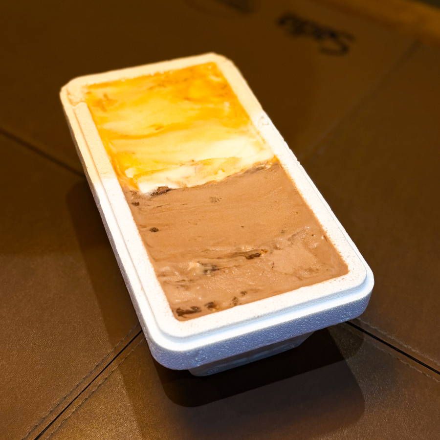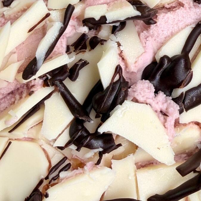 Gelato cremoso de mousse de maracujá, flocado com delicado chocolate meio amargo. Doçura elegante e sabor marcante, sem acidez e sem textura aerada — apenas pura cremosidade.
