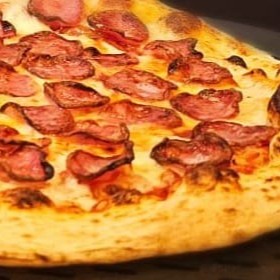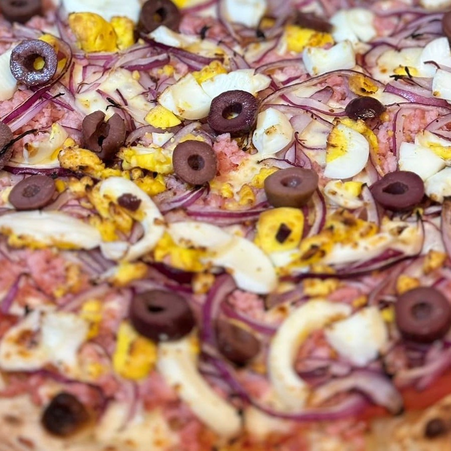 Pizza de calabresa, marguerita ou mussarela.