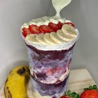 um delicioso copo açaí morango,banana,leite ninho,leite condensado.400ml