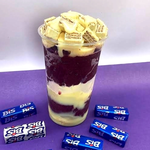 um delicioso açai de bis branco,leite condensado,leite ninho.400ml