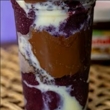um delicioso copo de açaí com creme de Ninho e creme de avelã.400ml