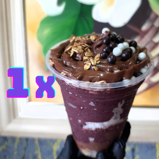 Monte e aproveite o nosso Casadinho Paçoca & Chocolate, disponível nos tamanhos 330ml, 440ml, 550ml, 770ml ou 1000ml! Feito com Açaí Cremoso, Cupuaçu autêntico e azedinho, Paçoquita crocante e Calda de Chocolate irresistível.