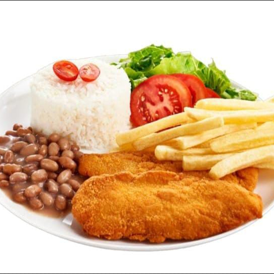 ARROZ, FEIJÃO A ESCOLHA, FRITAS, FAROFA DA CASA + SALADA DO DIA