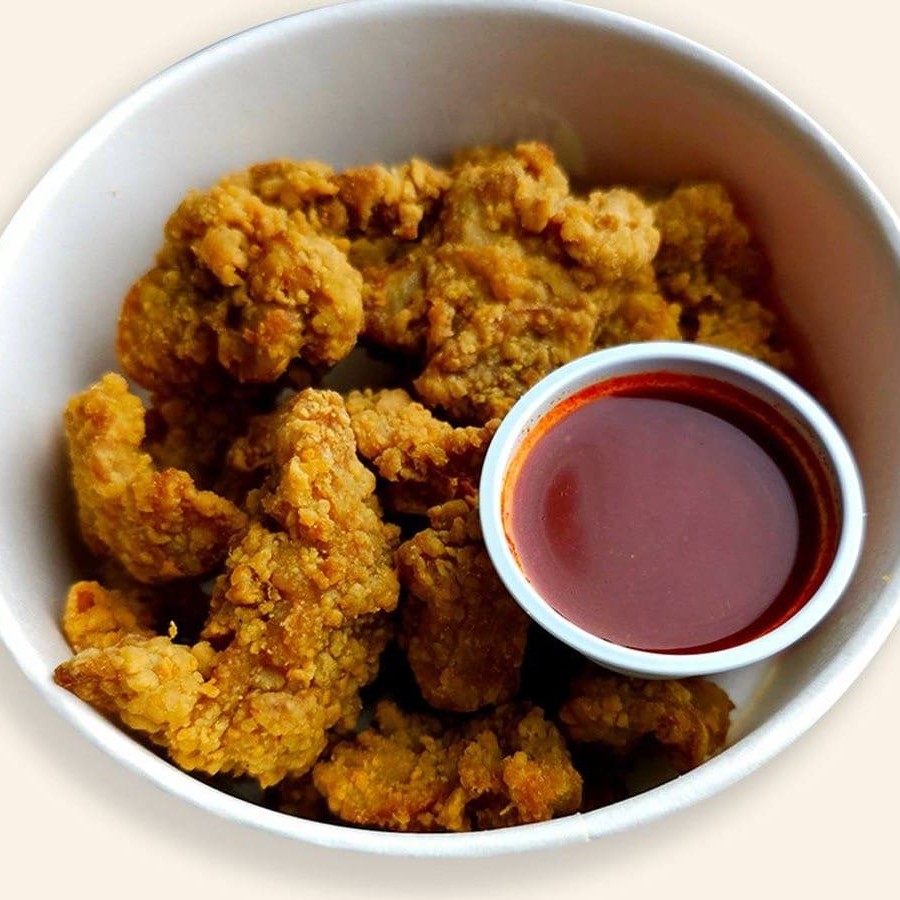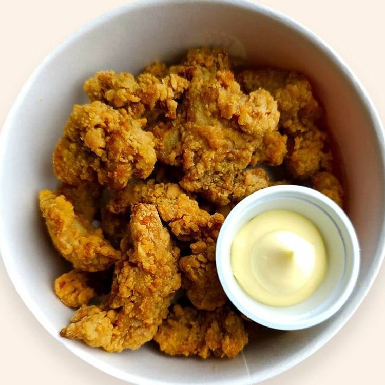 Frango frito temperado com molho especial, acompanha maionese japonesa