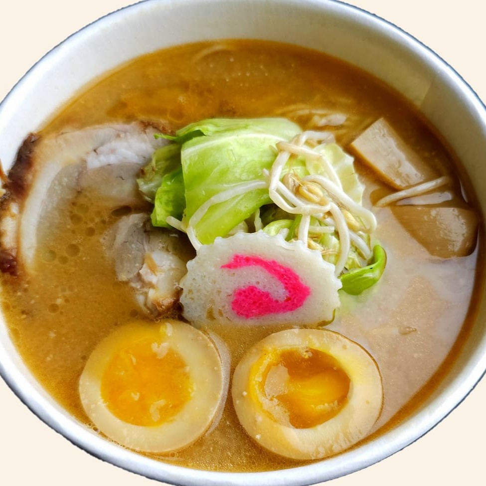 Caldo encorpado de frango e missô, macarrão, panceta de porco cozida e marinada, ovo cozido de gema mole, 1 massa de peixe, broto de bambu e legume sazonal. Precisa de finalização em casa, em apenas 2 passos. (aquecer em microondas, ou panela, o caldo por 4min, e os toppings por 1:30min). Acompanha instruções. Como é um caldo e macarrão, ao ir pronto, o caldo iria cozinhando o macarrão. E dependendo do tempo que o entregador demorasse, o macarrão do ramen poderia chegar muito cozido.