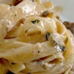 Talharim caseiro coberto com molho branco e queijo parmesão. Sugestões para 1 pessoa (450g),2 pessoas (900g), 3 a 4 pessoas (1,3kg).