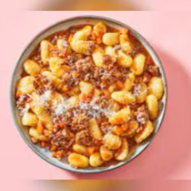 Nhoque de batata com molho bolonhesa e queijo ralado.Sugestões para 1 pessoa (450g),2 pessoas (900g), 3 a 4 pessoas (1,3kg).