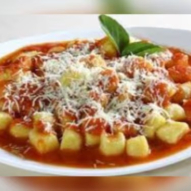 Nhoque ao molho sugo com queijo ralado.Sugestões para 1 pessoa (450g),2 pessoas (900g), 3 a 4 pessoas (1,3kg).