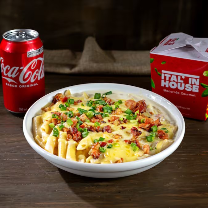 1 Box P de aprox. 450g (Penne à Bolonhesa) + 1 Refrigerante Lata.