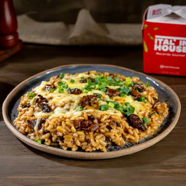 O risoto de funghi é um prato rico e aromático, cozido com caldo de legumes e cogumelos absorvendo todo o sabor. Finalizado com queijo parmesão e manteiga. Ideal para uma refeição especial. Finalizado com queijo e cebolinha. (aprox. 650g)