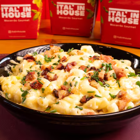 Cheddar cremoso e irresistível. Combinado com um toque de carne e bacon. Ideal para nossas massas e nhoques, este molho traz uma explosão de sabor e indulgência. Finalizado com queijo e cebolinha.