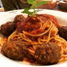 Spaghetti ao sugo com Polpettine (almôndegas) de carne ao molho rústico de tomates com ervas e um toque de pimenta.