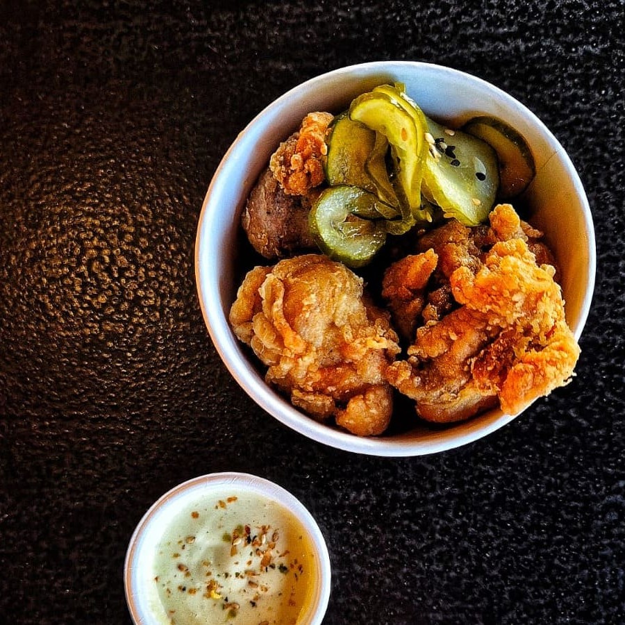 Meia porção de Frango frito japonês. Acompanha maionese de wassabi. Apx: 200g