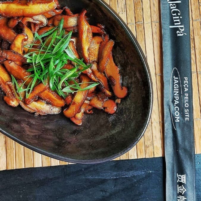 Shitakes frescos, salteados na manteiga e tempero japonês.