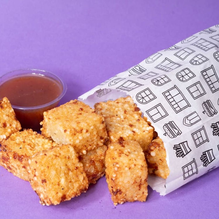 Almofadinha crispy com recheio de queijo gouda.