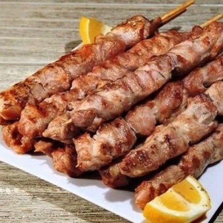 Delicioso espetinho de linguiça cuidadosamente preparado e assado a perfeição, cada espetinho contém aproximadamente 100 gramas