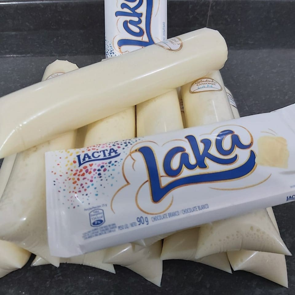 Geladinho de 200 ml a base de chocolate branco laka