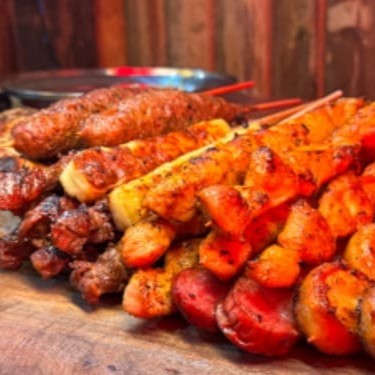 Um churrasco completo na sua casa! Combo Grande Família com 28 Espetinhos + Refri 2l: 6 de Carne, 6 de Frango, 4 de Calabresa, 4 de Coração, 2 de Pão de Alho, 2 de Queijo coalho, 4 Espetos especiais (Cafta com queijo, medalhão de porco ou frango, Panceta Suína) + 1 Refrigerante 2 litros