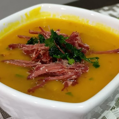 Uma saborosa Sopa de Legumes com Carne, servida em uma porção de 500ml. Esta deliciosa mistura inclui batata, cenoura, batata doce, batata salsa, abobrinha, abóbora cabotiá, chuchu, couve-flor e brócolis, com suculentos pedaços de carne. O prato é o suficiente para satisfazer uma pessoa, com a opção de incluir acompanhamentos de sua preferência. Uma verdadeira explosão de sabores irresistíveis para aquecer seu coração e confortar seu paladar em nossas especialidades de sopas e caldos.