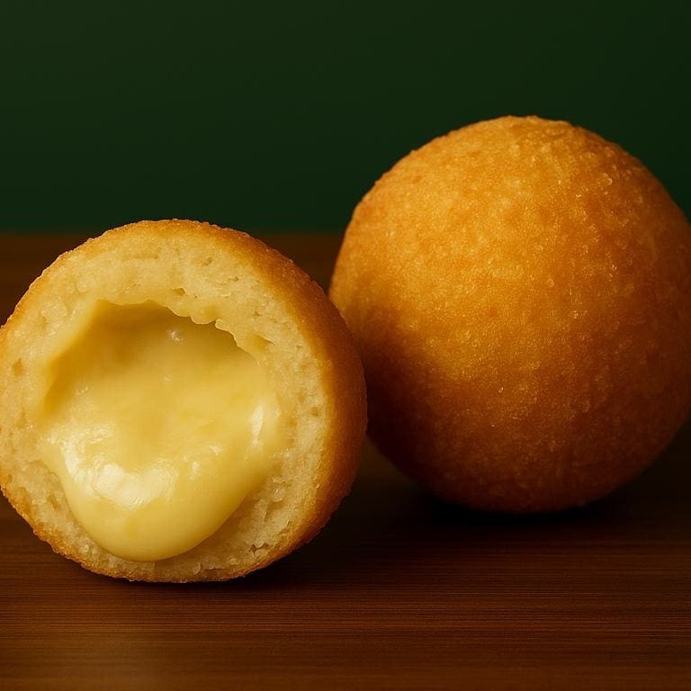 Massa leve e crocante por fora, com recheio de queijo cremoso por dentro.