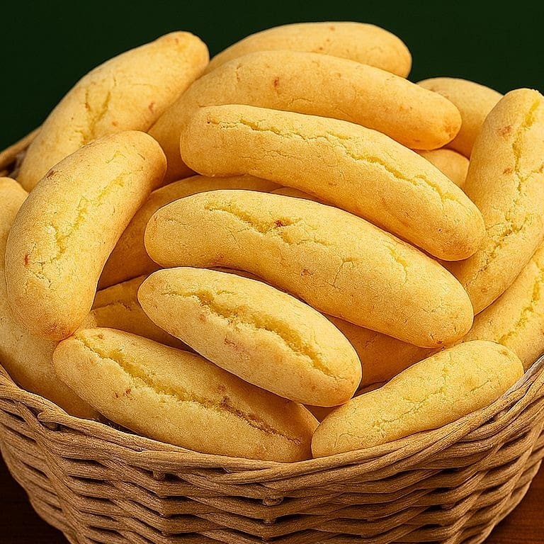 Vendido por unidade. É uma tradicional receita paraguaia, feita com polvilho e queijo, assada até ficar levemente dourada. Macia por dentro, com sabor marcante e perfeita para acompanhar um café.