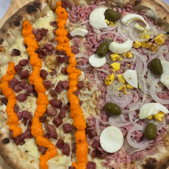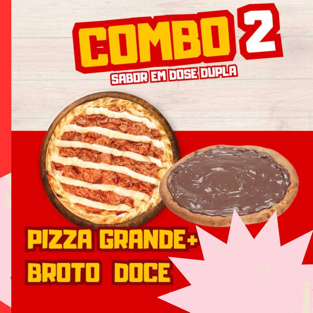 1 Pizza Grande 8 Fatias + 1 Pizza Broto Doce 4 fatias