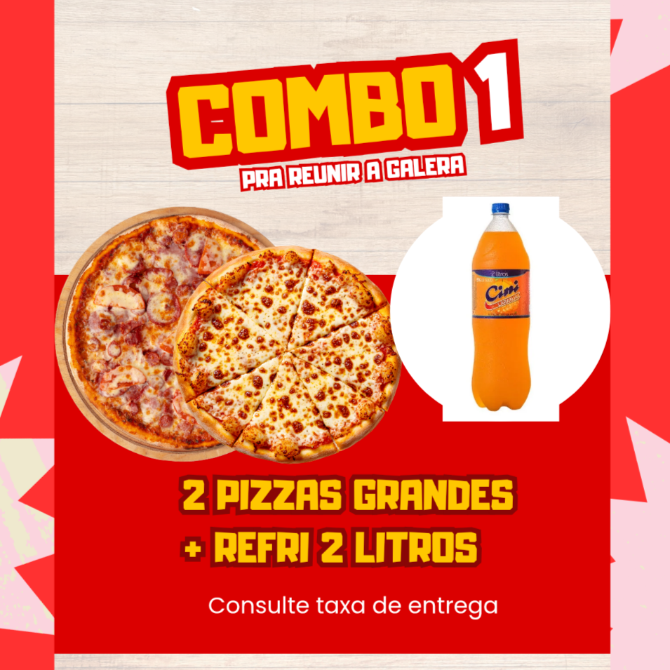 2 Pizzas Grandes 8 Fatias cada + Refrigerante 2 Litros