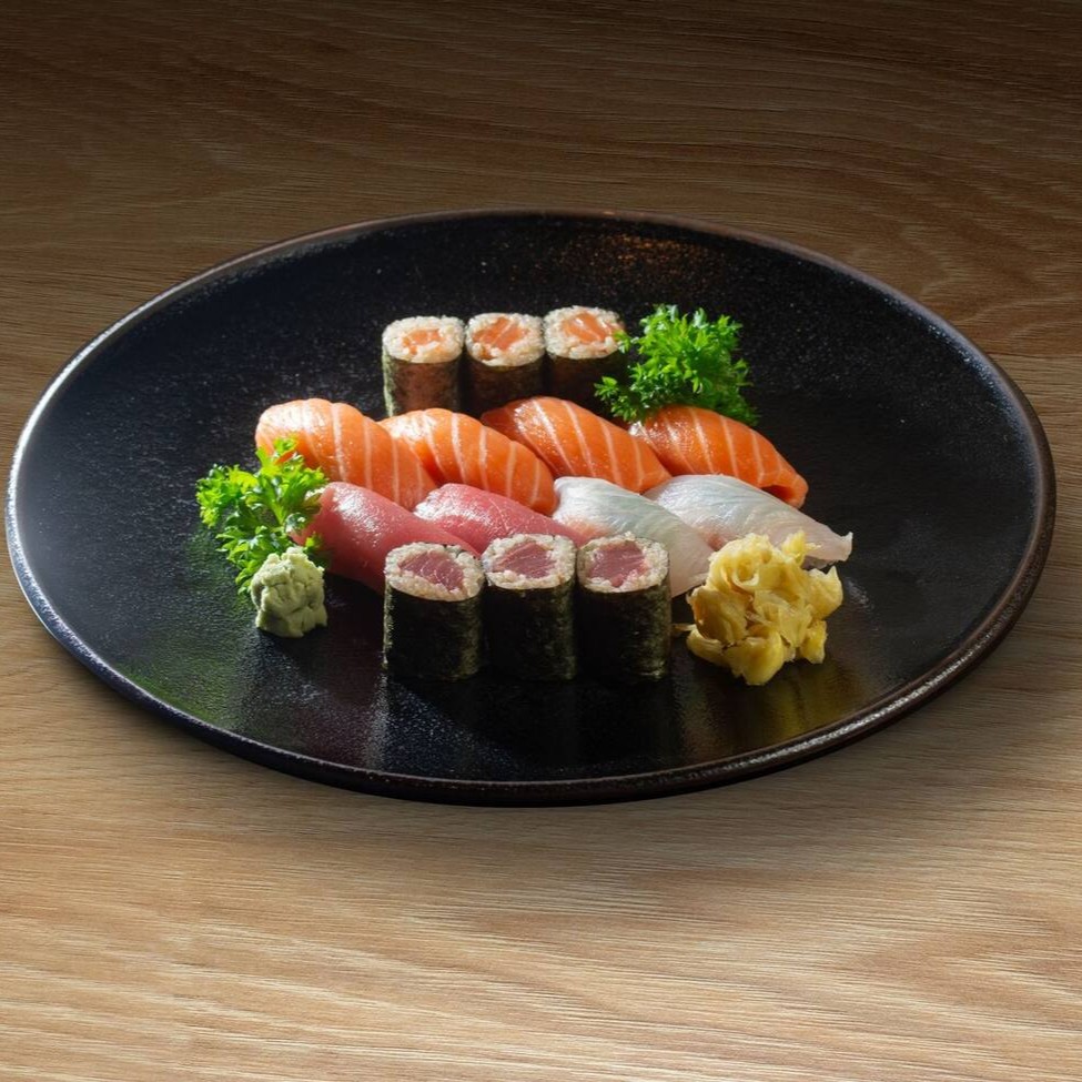 Seleção de 23 peças de sushis elaboradas com técnica apurada e ingredientes frescos, respeitando a essência da cozinha japonesa. O cliente pode escolher entre: • Misto (atum, salmão e peixe branco do Dia) • Apenas atum • Atum + salmão Uma combinação precisa, pensada para valorizar o corte, a temperatura e o equilíbrio de sabores. Simplicidade, respeito ao produto e excelência no preparo — a assinatura do Chef Jun Sakamoto em versão casual.