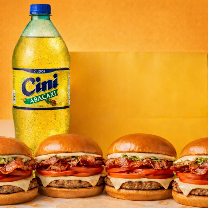 Acompanha batata frita crocante e sequinha + 1 refrigerante Cini Abacaxi 500ml gelado.