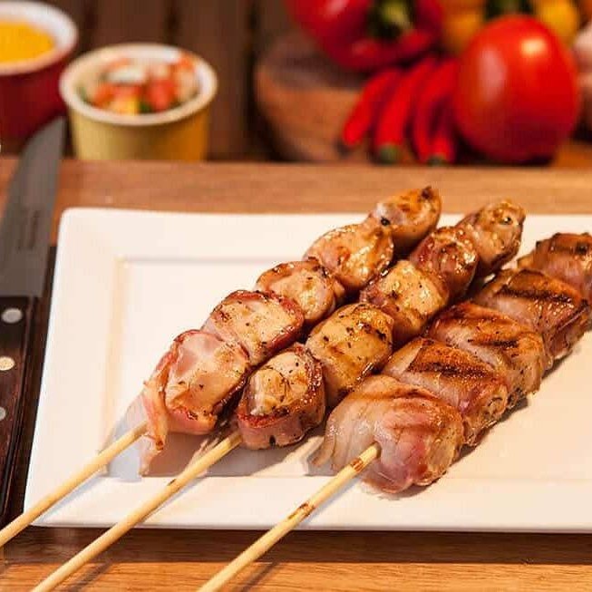 1 Espetinho delicioso de Frango com Fatias de Bacon. 90g