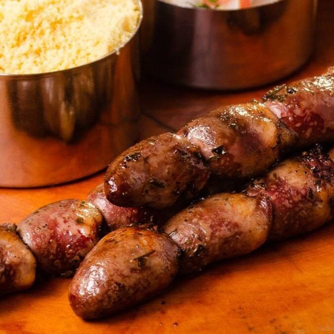 4 Espetinhos de Medalhão, 4 Espetinhos de Alcatra, 4 Espetinhos de coração, 3 queijo coalho, 3 pães de alho e 2 Kafta Recheada C/ Queijo!