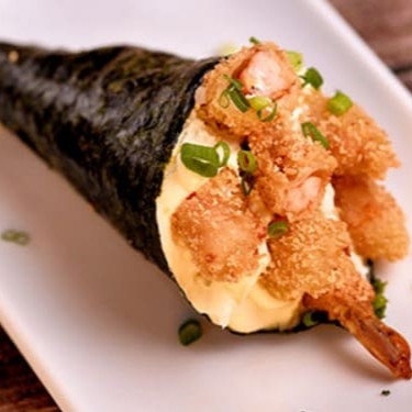 Temaki philadelfia, arroz, cream cheese, cubos de salmao, empanado na farinha panko e frito! nao acompanha molhos extras!