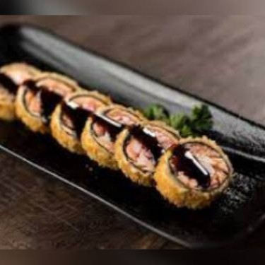 4 Unidades. Lamina De Salmão Recheado De Camarão, Empanada E Frita Acompanhada De Molho Especial.
