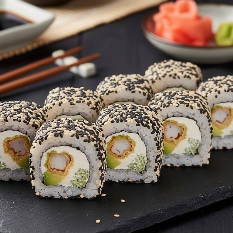 Nori, Arroz, Camarão empanado e Cream Cheese