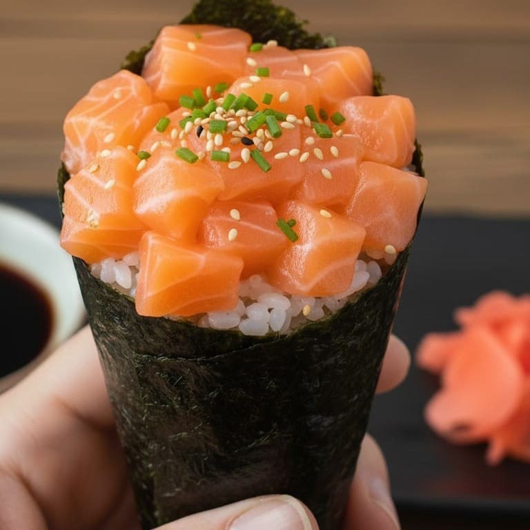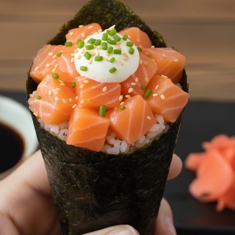 Temaki Salmao Grelhado Crispy Cebola Roxa E Molho Da Casa