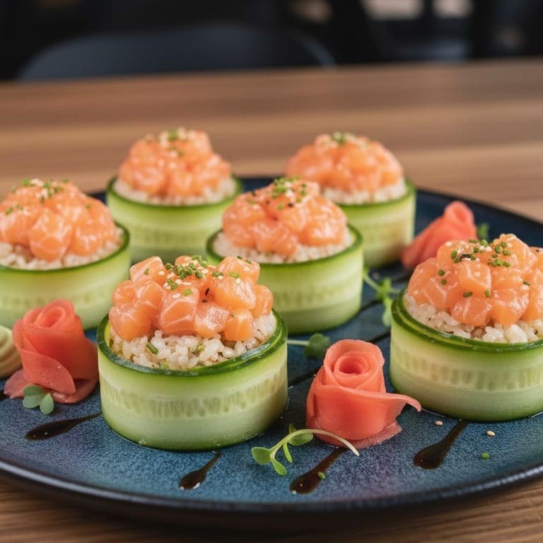 Pepino envolto em Arroz e Patê salmão