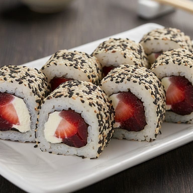 Arroz, nori, morango,goiabada e cream cheese