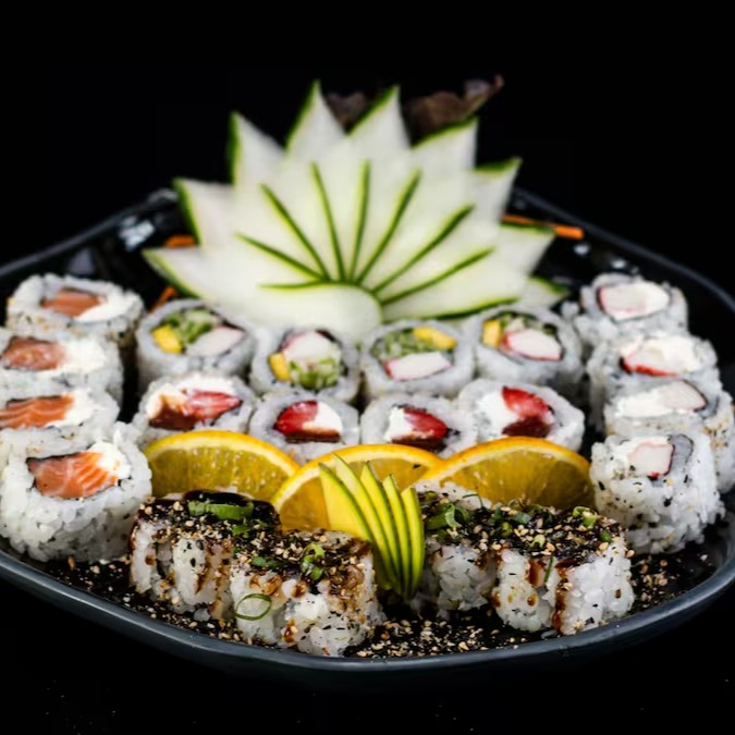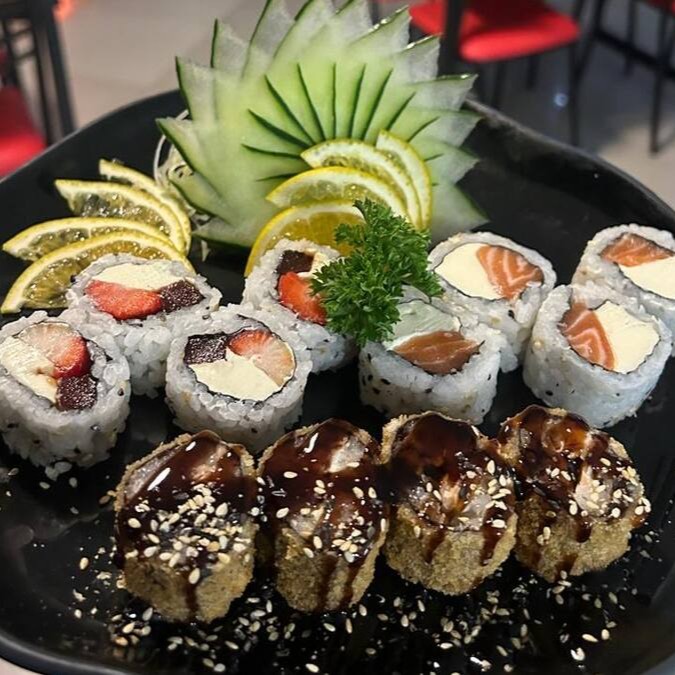 Uramaki filadelfia 8, uramaki skin 8,uramaki nagano 8,uramaki california 8, uramaki romeu e juliera 8,uramaki kani 8, shake maki 8, teka 4,kappa 4 , hot filadelfia 8