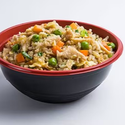 Gohan , cenoura , ovo , ervilha , cebolinha e frango.